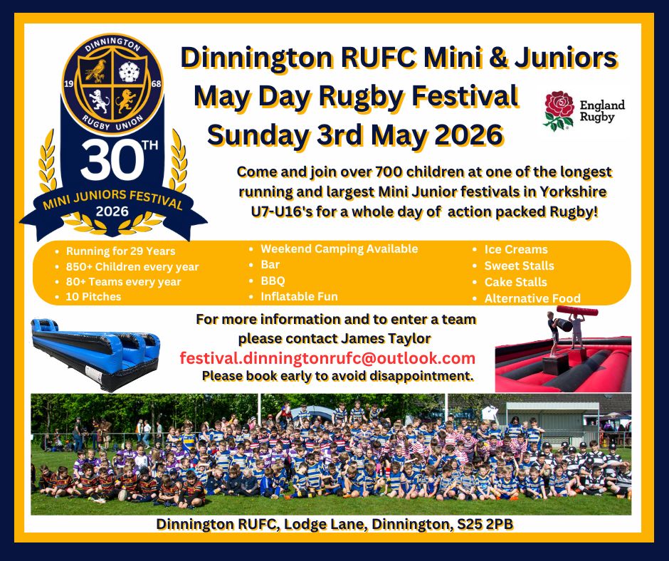 Dinnington RUFC have been running a Mini/Junior festival on Sunday of the May Day weekend since 1996.