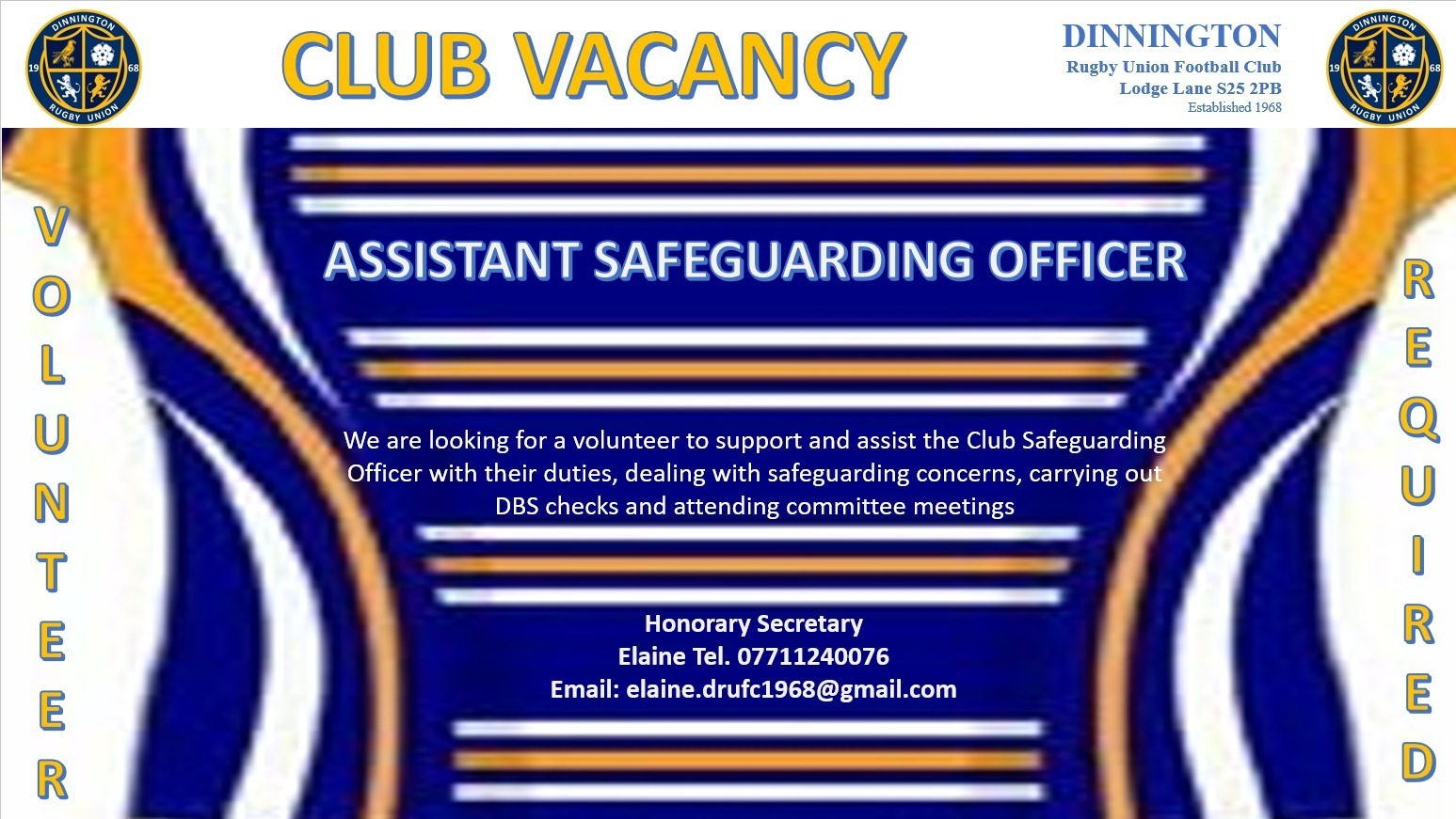 We have a vacancy for an ASSISTANT SAFEGUARDING OFFICER, if you are interested please contact elaine.drufc1968@gmail.com